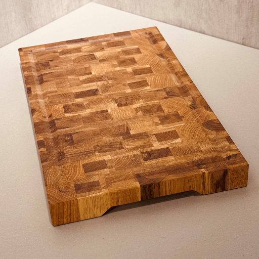 Denna skärbräda i ek ändträ är framtagen för dig som söker en rejäl och pålitlig arbetsyta i köket. Med sin generösa storlek fungerar den utmärkt som slaktarblock och klarar allt från större köttstycken till daglig matberedning. Konstruktionen kombinerar funktion, hållbarhet och ett tidlöst uttryck som passar i alla kök.